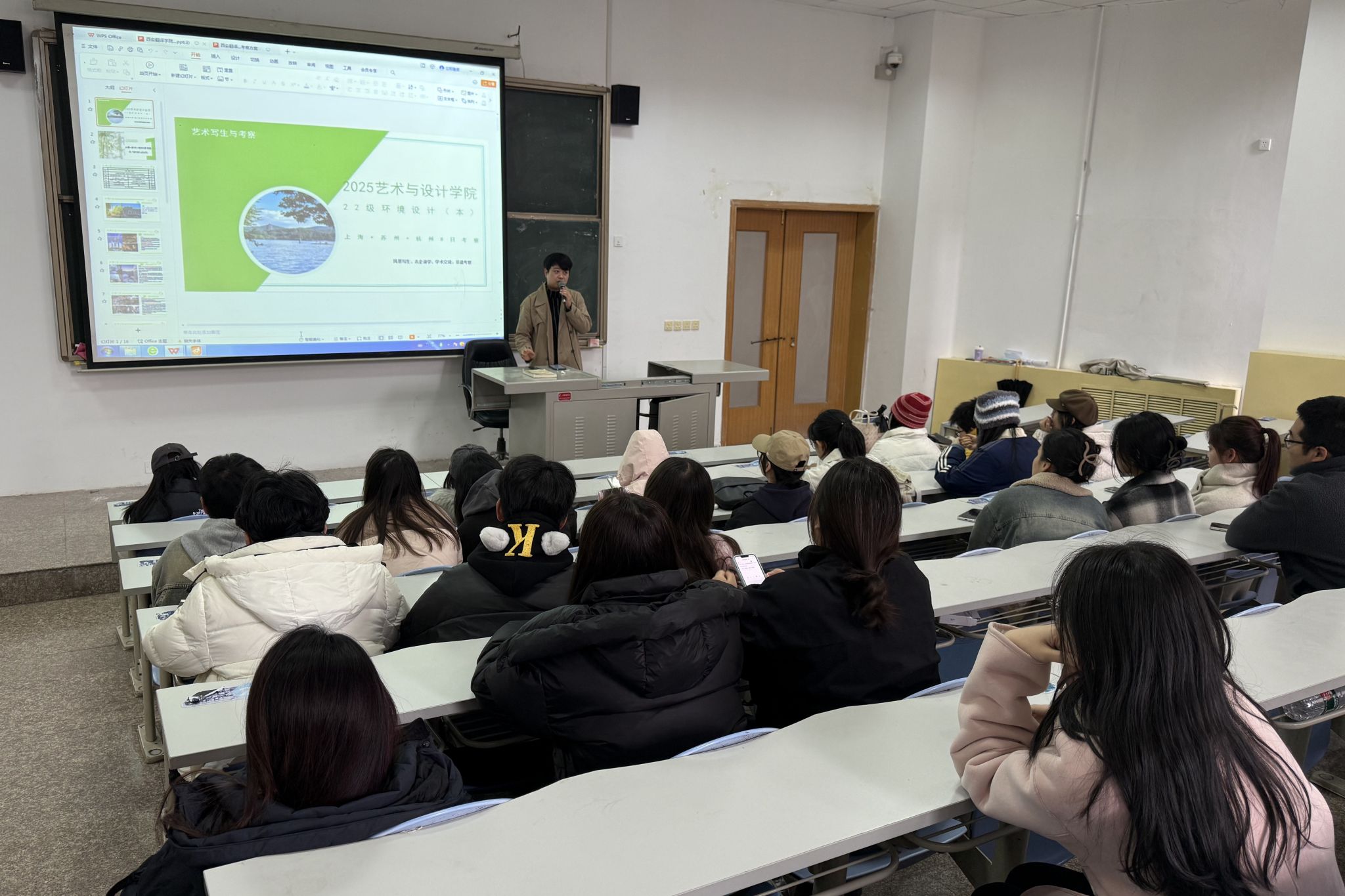 12月4日,环境设计系在5号教学楼召开了2025年春季实习工作推进会,旨在为2022级本科、2023级本科及专科、2024级专升本的学生详细介绍实习的目的、内容和路线,并进一步指导他们根据自身专业需要和职业规划选择合适的实习路径。