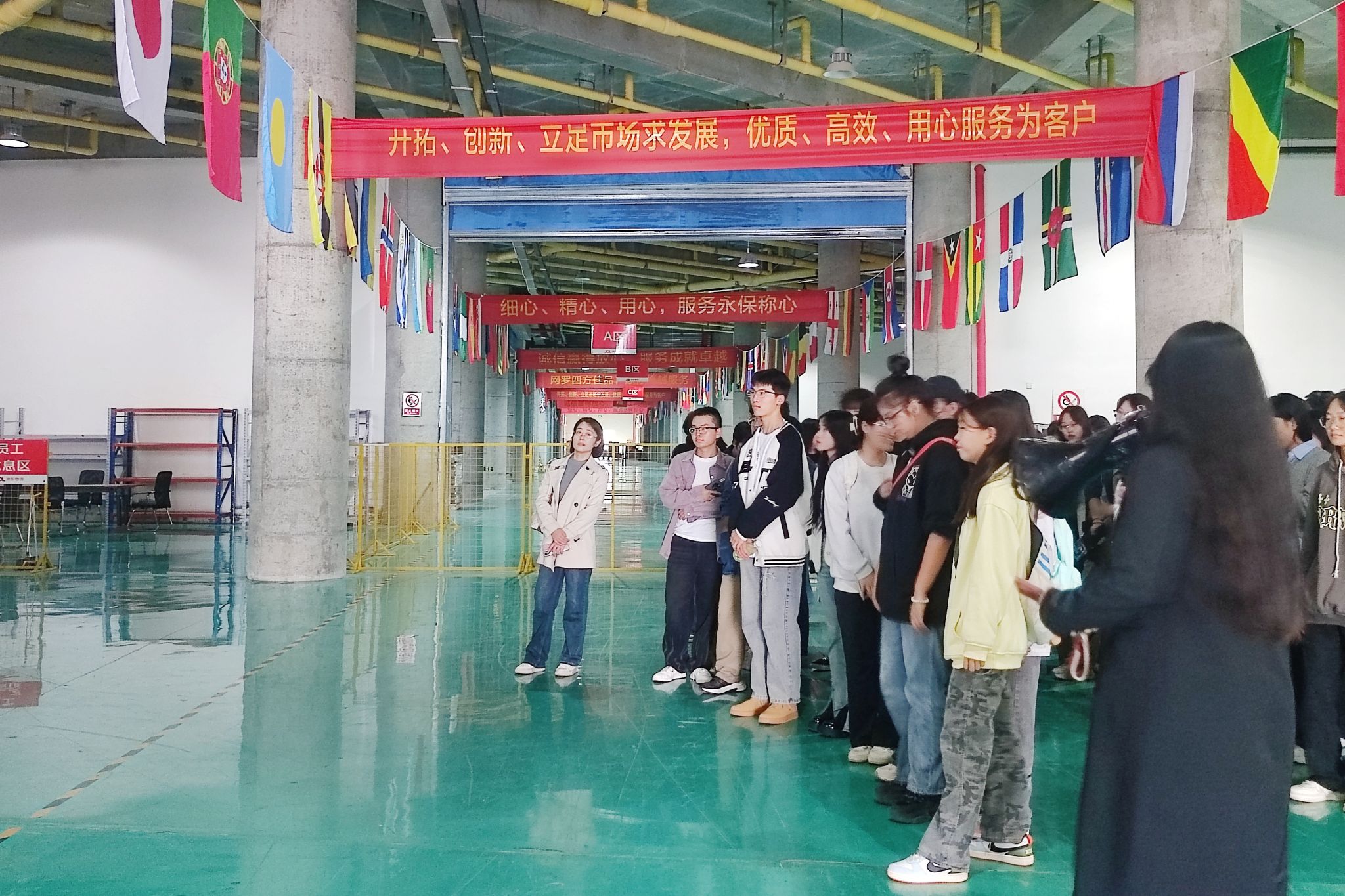 第一站来到了中国(陕西)自由贸易试验区通关服务中心。在讲解员的带领下,学生们首先了解了综合保税区的整体规划,包括其功能定位、产业布局以及为促进电子商务便利化所采取的一系列创新举措。第二站走进了陕西西咸空港综合保税区。学生们了解到综合保税区的独特运作模式和巨大的经济潜力。大家参观了京东跨境货物仓库,亲眼见证了跨境电商物流的高效运作,近距离感受到了跨境电商物流的便捷与高效。讲解员详细介绍了京东跨境物流系统的运作机制,从商品入境的海关清关、质量检测,到仓储管理、订单处理,再到智能打包、快速配送,每一步都体现出科技的力量和人性化的服务。第三站走进了E工厂跨境数字创新园。在E工厂,学生们参加了关于跨境电商发展趋势、市场机遇与挑战的专题讲座,对跨境电商的运作模式、营销策略及未来趋势有了更加全面而深入的理解。