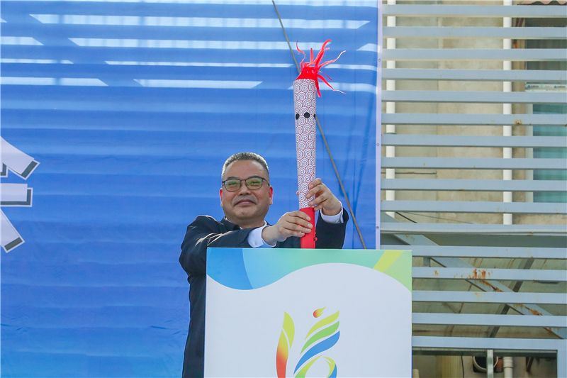 政府督导专员、校党委书记栾宏点燃火炬,启动2023年阳光体育运动仪式
