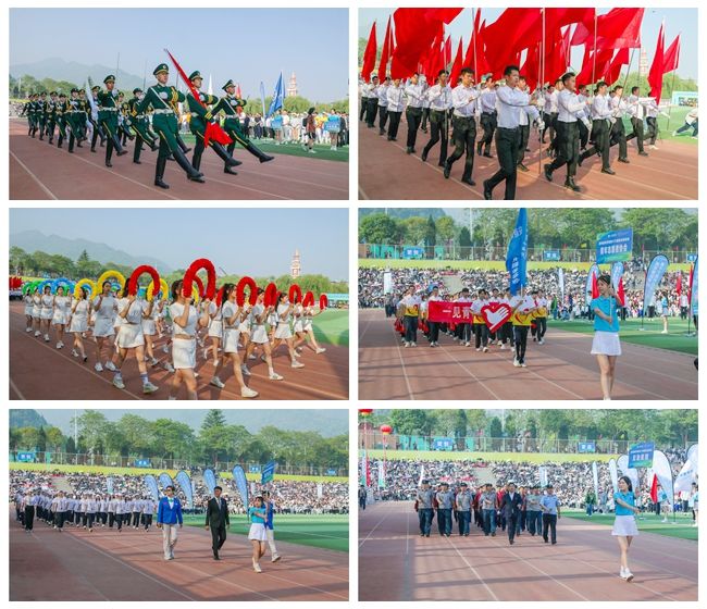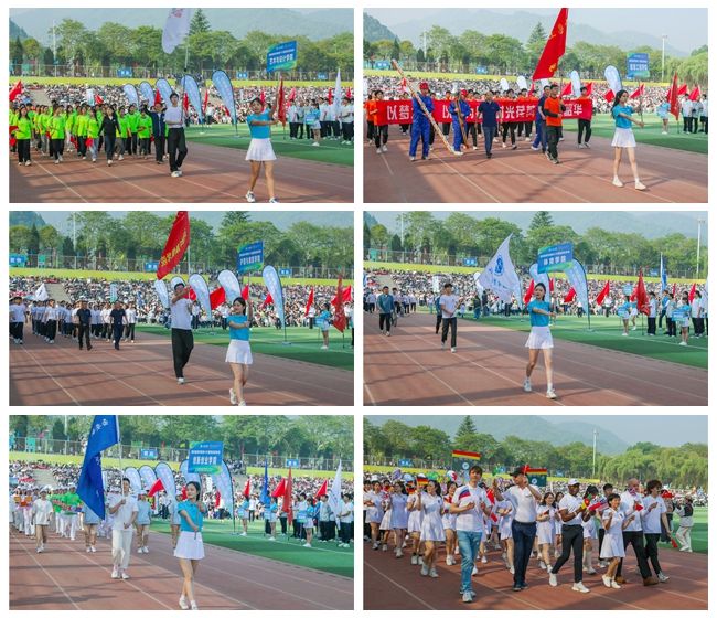 伴随着振奋人心的《运动员进行曲》,国旗护卫队以挺拔的身姿护送着国旗与校旗,整齐划一、昂首阔步地通过主席台。紧随其后的是会徽队、花束队、红旗队,裁判员、教职工方阵,国际交流学院及各二级学院运动员、青年志愿者协会、后勤集团代表队。他们步伐整齐、口号嘹亮、目光坚定地走过主席台,以积极饱满的精神接受全校师生的检阅。